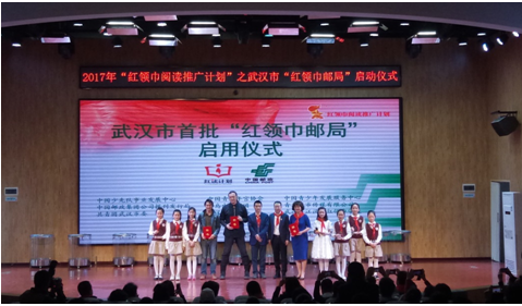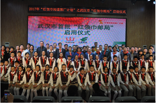 2017年4月27日上午,由中国少先队事业发展中心、中国青少年宫协会、中国青少年发展服务中心、中国邮政集团公司报刊发行局、共青团武汉市委员会、武汉市少工委、青岛出版集团等单位联合主办的“红领巾阅读推广计划”──首批“红领巾邮局”主题活动室启用仪式在武汉江汉区红领巾学校举办。中国青少年宫协会副会长周雄,青岛出版集团党委副书记、总经理贾庆鹏,武汉团市委副书记陈隽罡,湖北省报刊发行投递局、中国邮政集团武汉市分公司负责人与武汉市首批20所“红领巾邮局”主题阅读活动室受赠学校校长、大队辅导员代表和少先队员代表共300余人出席了活动。