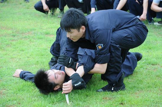 在集中培训现场,专家进行了“校园安全风险识别与应对”的讲座,对校园暴力袭击事件的种类、特点、原因以及防范点进行了阐述,对一些校园安全典型案例进行了分析讲解;实践操练现场,突发事件应急演练与搏击训练进行的如火如荼,专家们手把手教授安全器械的使用方法,反复为学员们演练擒拿格斗的防暴技能,此外,专家们还向学员们传授解脱术、防卫控制术及现场急救方法。
